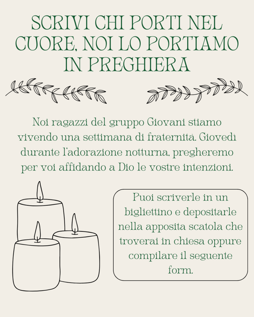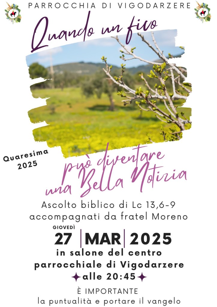 - SERATA BIBLICA: come in Avvento ci incontreremo per un momento di ascolto biblico con fratel Moreno giovedì 27 marzo alle 20:45 in salone.