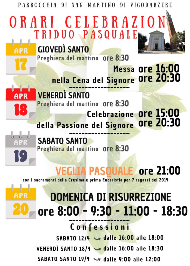 ORARI DELLE CELEBRAZIONI DEL TRIDUO PASQUALE